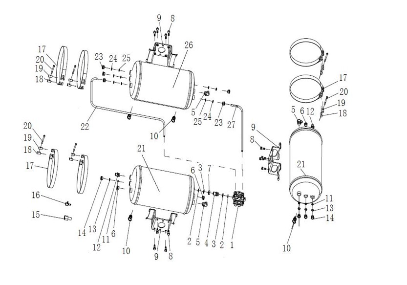 Air cylinder assembly Φ 275/20 L + 10 L |